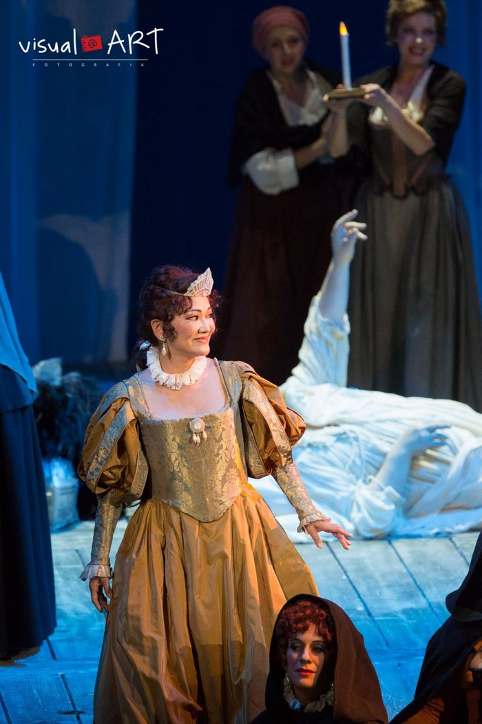 Vynikajícím způsobem se uvedla čtveřice dámských hrdinek. Stále krásným lyrickým sopránem, osobním charismatem a nemalým hereckým talentem dodnes disponuje velká hvězda devadesátých let Eva Mei (více jsem o ní uvedl v recenzi z loňského uvedení Rossiniho Malé slavnostní mše na Svatodušním festivalu v Salcburku zde) ve vůdčí ženské roli Alice Fordové. Jako její dcera Nanetta zaujala svými technicky jistým hlasem všestranná sopranistka Mina Yamazaki (tato rodilá Japonka je už řadu let zejména na italských scénách velmi vytíženou interpretkou Mascagniho Iris a Pucciniho Madam Butterfly a Turandot), výraznými mezzosoprány i komickým nadáním na sebe upozornily paní Quickly a Meg Page neboli Giovanna Lanza a Sofia Koberidze.