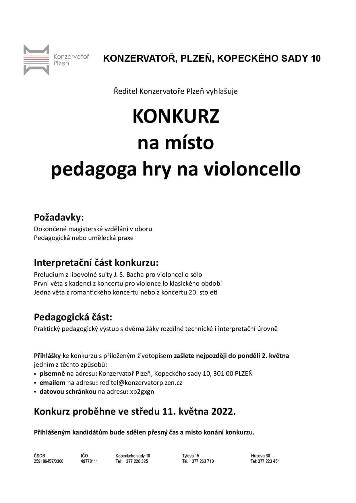 Inzerce Konzervatoř Plzeň vyhlašuje konkurz na místo pedagoga hry na violoncello Publikováno 14/04/2022 sdílejte: 0 minut čtení sdílejte: TémataSeznam inzerátů Sdílet článek Facebook email zkopíruj odkaz vytisknout sdílejte: Předchozí článek Česká fihlarmonie zahájí 127. sezonu koncerty v Rudolfinu Další článek Slovenská filharmonie uvede tři koncerty zaměřené na filmovou hudbu 0 0 hlasy Ohodnoťte článek Odebírat Přihlášení Upozornit na nové a další komentáře nové odpovědi na můj komentář Label {} [+] Jméno* E-mail* Webová stránka Label {} [+] Jméno* E-mail* Webová stránka 0 Komentáře Nejstarší Nejnovější Most Voted Inline Feedbacks Zobrazit všechny komentáře Načíst další