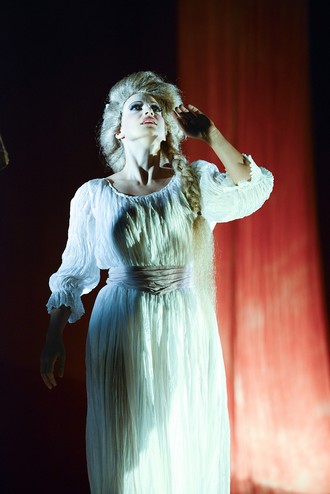 Hodně místa bylo režisérem Luďkem Golatem věnováno pohybu – avšak pohybu zcela primitivnímu a prajednoduchému – výrazně chyběla choreografova ruka. Jednotlivé postavy působily plošně, loutkovitě, Tamino (Ondřej Koplík) byl značně statický, zřejmě záměrně veden k pasivitě a k téměř nulové mimice. Pamina (Tereza Mátlová) naopak přehrávala až do přelíbeznosti. W. A. Mozart: Kouzelná flétna - Tereza Mátlová - Divadlo F. X. Šaldy Liberec (foto Roman Dobeš)Mozartova Kouzelná flétna snese ve své pestrosti mnoho, ale mělo by být přinejmenším čitelné, zda jde o záměrnou parodii nebo snad o pokus o naivistickou režii? V orientaci mohly divákům pomoci rekvizity, ale práce s nimi byla nejasná – s plyšovým hadem na začátku se prakticky nehrálo a pak byl dokonce nedbale odhozen na jeviště, Paminina kytara zůstala funkčně naprosto nevyužitá, také Papagenova poměrně drobná zvonkohra a Taminova flétna sehrály dosti nevýraznou roli. Na úplném konci opery se všechny postavy z nějakého pro mne nečitelného důvodu jaksi pobratřily pod vedením neobyčejně kýčovitých dětských postaviček „Isis“ a „Osiris“. Divák byl občas překvapen nenadálou akcí (pacipacipacičky dvou myšek či zajíčků, chorovod zasvěcenců vedených slepým Mluvčím, který svou bílou holí drží nad Papagenem jeho oprátku, Monostatos, který za sebou po jevišti na dece vláčí „spící“ Paminu).