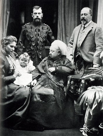 ===Společenské a kulturní kontakty královských a šlechtických rodů Ruska, Británie, Německa, Dánska, Holandska, Řecka, Rumunska a tak dále, upevňované vzájemnými sňatky s dcerami, syny a vnuky britské královny Viktorie, přesahují rámec reálií, ozřejmujících zázemí Petipovy Bajadérky. Nicméně není bez zajímavosti, že Vilém II. byl nejstarším vnukem královny Viktorie a bratrancem cara Mikuláše II., jehož manželka carevna Alexandra Fjodorovna Hessenská, rozená Alix, byla také vnučkou královny Viktorie, která ji vychovávala do věku dvanácti let v Anglii. (Mikuláš II., carevna Alexandra a jejich děti byli zastřeleni bolševiky po Velké říjnové revoluci v Jekatěrinburgu roku 1918.)