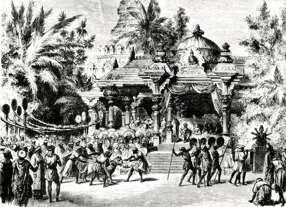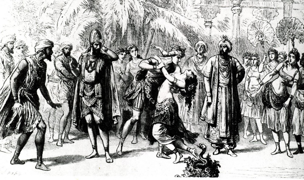 S pronikáním Evropanů na indický kontinent prostřednictvím obchodních Východoindických společností Francie, Holandska a Británie se zpětně šířily informace o životním způsobu a filozoficko-náboženských představách jiných kultur. Do evropské literatury, opery a baletu postupně pronikal obdiv k hinduistickému propojení spirituality, senzuality a sexuality Šivova náboženského kultu, zásadně odlišný od katolického pojetí protikladné duality lásky duchovní a smyslné. (Z této duality vychází ve své nové koncepci baletu La Bayadère Javier Torres.)