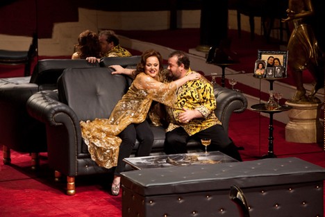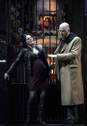 V opere vystupuje päť postáv, štyri sú veľké, rola Imeldy (mezzosopranistka José Maria Lo Monaco) je epizódna. V obsadení vysoko dominoval tenorista Fabio Sartori ako Riccardo. Možno jemu režijný zámer napomohol, zaguľateným exteriérom by totiž ilúziu milenca vyvolal ťažšie než predstavu mafiánskeho bossa. Podstatné však je, že jeho dramatický, vrúcne sfarbený a ideálne frázujúci tenor znel tak sýto a obsažne, že bez problémov naplnil priestor La Scaly. Z jeho hlasu bolo najväčšmi cítiť zámer skladateľa vytvoriť v Obertovi skutočnú drámu. Maria Agresta (Leonora) má za sebou len šesťročnú kariéru, zato dramatickými postavami bel canta sa to v jej kalendári priam hemží. Keď som ju počul pred dvoma rokmi ako Donizettiho Gemmu di Vergy na festivale v Bergame, nebol som si istý, či nápor vypätých rolí jej skôr neuškodí. Maria Agresta má však zdatnú techniku, cit pre legatovú frázu má priamo v krvi, výšky jej znejú pevne, predsa však- a hoci sa to dnes asi „nenosí“ – prvotriedna dramatická koloratúra musí znieť pevnejšie a dôraznejšie aj v spodnom registri. Jej soprán na pomedzí lyrického a mladodramatického odboru však veľmi dobre ladil v spoločných scénach so Soniou Ganassi, ktorej timbre je viac-menej sopránový, čo na rossiniovskej parkete zužitkúva v rolách písaných pre univerzálnu Isabellu Colbran. Verdiho Cuniza je však part o poznanie dramatickejší a tam sa u Ganassiovej predsa len manko v rezonančných hĺbkach prejavilo. Titulnú rolu v navštívenom predstavení po Michelovi Pertusim prevzal tridsaťročný rumunský basista Adrian Sampetrean. Nestál na pódiu Scaly po prvý raz (v Macbethovi alternoval Banca so Štefanom Kocánom), v rozsiahlejšom Obertovi mal však širšiu paletu možností preukázať svoj talent. Pravdu povediac, jeho hlas ma ničím mimoriadnym neupútal. Vo farbe, intenzite tónu a výrazu pôsobil Sampetreanov Oberto až príliš začiatočnícky a na koruny efektných výšok som tiež čakal márne.