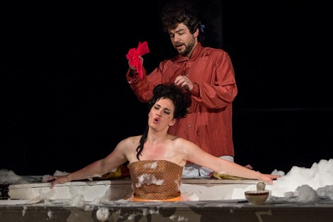 A tak se můžete těšit na hraběte Almavivu močícího na veřejnosti, doktora Bartola trůnícího s rolí toaletního papíru na záchodku, případně držícího porodní kleště, dobývajícího se do rozkroku Doni Alonsy – žákyně Dona Basilia. Nikdo, žel, paní režisérce Belcredi neprozradil, že jsme v Olomouci v nedávné inscenaci Lazebníka měli také vanu s pěnou, takže pro olomoucké diváky platí zřejmě ono „opakování matka moudrosti“.