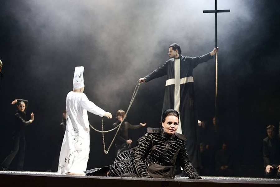Rozložení dramatického materiálu do několika pečlivě hierarchizovaných postav se také příliš nezdařilo. Pěvecký part Kateřiny z Redernu je velmi vypjatý, komponovaný pro mladodramatický (a stále dramatičtější) soprán Lívii Obručník Vénosové, která se s ním popasovala se ctí (alternuje Lucie Kašpárková), partům ostatních postav zůstala skladatelka dosti dlužná. Více příležitosti ke zpěvu poskytla pouze představiteli duchovního a superintendanta Martina Nusslera (Jiří Kubík), Albrechta z Valdštejna (Luboš Skala) a Kateřinina syna Kryštofa (nepříliš výrazný pěvecký a herecký výkon Michala Bragagnola). Ostatní postavy, snad s výjimkou představitele Rudolfa II. (Jiří David), měly epizodní charakter a part Bernarda Fuesse, vychovatele a preceptora Kryštofova (Pavel Vančura) je téměř pominutelný.