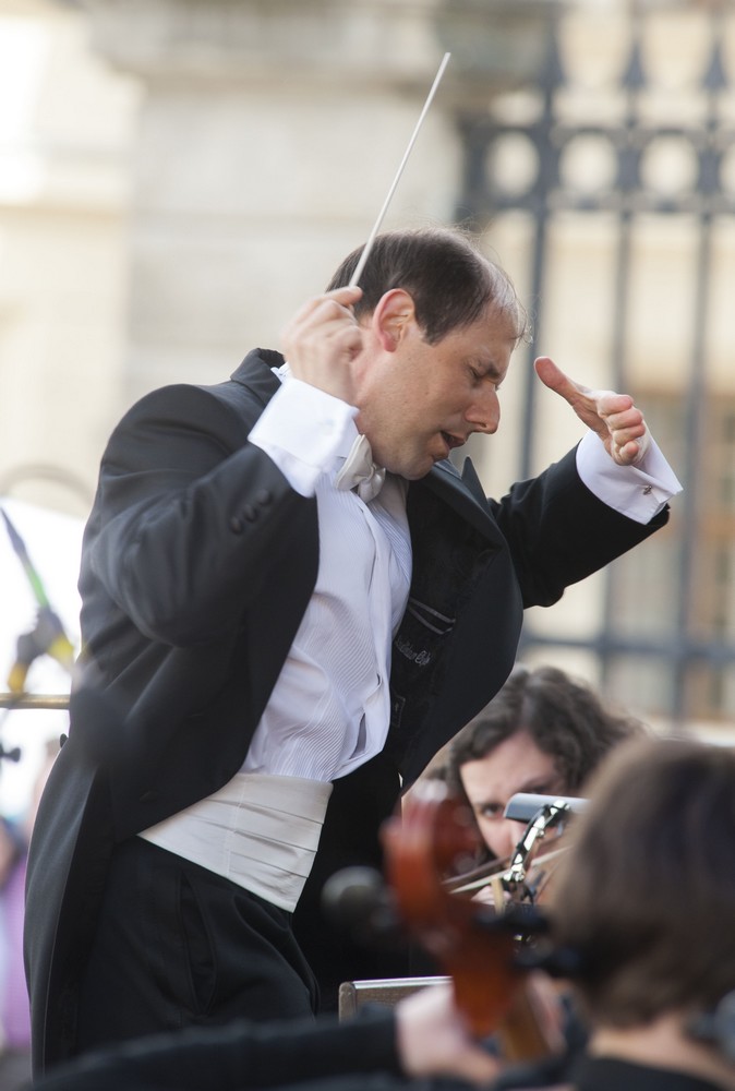 Na pódiu na Hradčanském náměstí hrál pod dohledem a v režii filharmonie a pod taktovkou Ladislava Ciglera nejprve orchestr složený až na několik jejích členů převážně z nejlepších žáků základních uměleckých škol, a to z Brna, Jihlavy, Liberce a Ústí nad Orlicí. Předehru k Hubičce, dva ze Slovanských tanců, polku z Prodané nevěsty…Tuto koncertní část, sledovanou ve velkém počtu také rodinnými příslušníky, provázelo jasné a pochopitelné nadšení a na pódiu velké soustředění vedoucí k velmi zdařilému výsledku. Když vpodvečer skončilo jejich poslední vystoupení, podle všeho asi už nejusazenější a nejlepší ze tří opakovaných, oblehli mladí muzikanti v zákulisí ještě bezmála na půlhodinu Jiřího Bělohlávka, který je předtím také chvíli dirigoval – v jedné části Novosvětské symfonie. Byl to pro ně jistě obrovsky motivující zážitek. Jeho autogramy si odnášeli na visačkách nebo na notách; ale opravdu nekonvenční byl mladý činelista: pana šéfdirigenta si nechal černým fixem podepsat na vnitřní stranu jednoho ze svých dvou mosazných talířů.