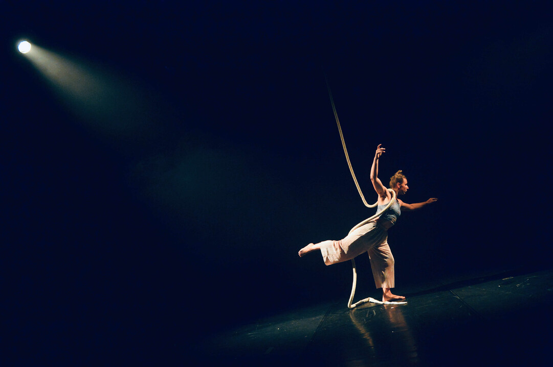 Akrobatka a fyzioterapeutka Adéla Jordáková se představila v pomyslném dialogu s lanem, ve třech postupně na sebe navazujících obrazech, v nichž jako by se k předmětu vždy postavila s jinou energií, s nábojem zkoumání materiálu, komunikace se soupeřem, který si podmaňuje performerku nebo ona jeho. V anotaci zmíněná snaha „vyjádřit dominanci nebo podřízení se objektu“ se v choreografii kusu odráží, jen je trochu příliš vážný do dramaturgie programu. Divák neočekává opakované navracení performerky k předmětu, a není zcela zřejmé, že číslo pokračuje nebo že skončilo. Po technické stránce jde o perfektní výkon, pointa by ale ještě mohla být zvýrazněna.