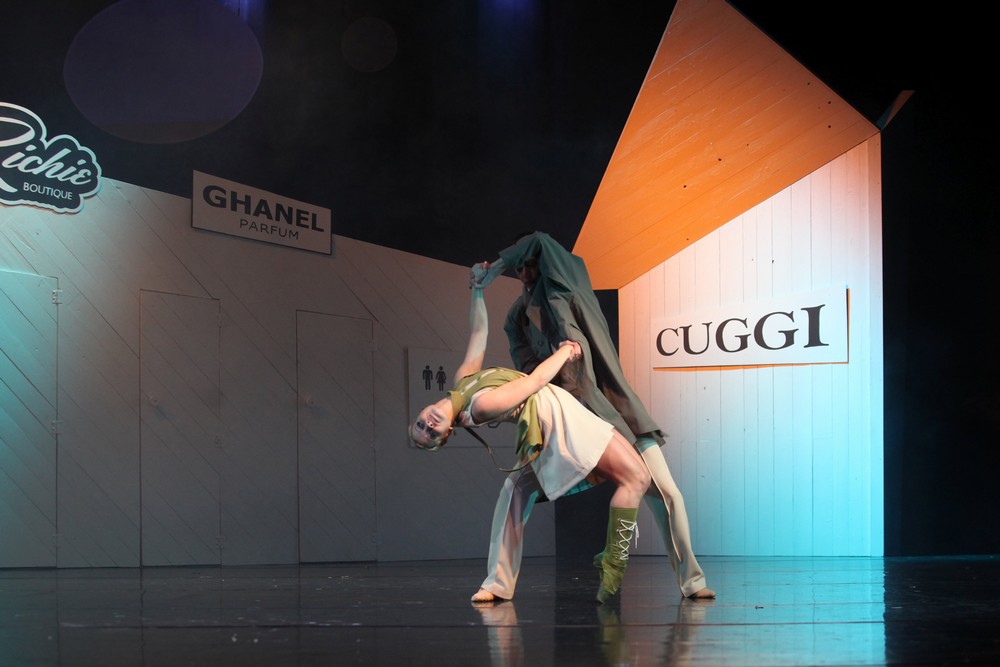 I když inscenace staví primárně na vážném tématu vyloučení ze společnosti, převládá v ní nadsázka. To se odráží i v herectví. Pro někoho je možná nevkusně přepjaté, ale já jej vnímám jako posun ke karikatuře. Nejsilněji se projevuje ve společnosti módních stylistů a účastníků narozeninové party, případně v postavě metrosexuálního Učitele tance, respektive DJ Paula (obě role v podání excentrického Pavla Novotného). Díky hereckému odstínění vyniká kontrast mezi temperamentní a burleskně pojatou Macechou Marii Gornalové a jejích dcer v podání Veroniky Šlapanské a Margaux Thomas na straně jedné a herecky umírněnějším Tatínkem Alexeye Yurakova. Ten sleduje dění bez většího zájmu ponořen do četby denního tisku, popřípadě hraje roli pasivního donátora rozmarů své druhé ženy a jejích dcer.V opozici k módní společnosti a Maceše s jejími dcerami je vykreslena také Popelčina Maminka, respektive Dobrá víla, kterou s elegancí tančí Karolína Miková. V mumraji pokřivených a konzumních charakterů jako jediná působí dojmem dobré bytosti ze starých baletních pohádek. Zajímavější charakteristiku dostal do vínku Princ Jaroslava Koláře. Je sice dítětem konzumní společnosti, ale ta se mu zajídá svou falší a hledá z ní únik. Popelka Rie Mority prochází mnoha výrazovými polohami. Provází ji samota, sklíčenost a dokonce vztek a nakonec upřímný milostný cit. Jde o výrazný výkon, jemuž by však slušela jemnější herecká kresba v klíčových okamžicích.