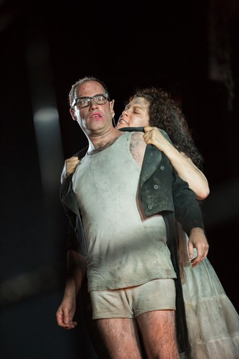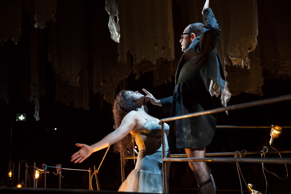 Najväčšiu zásluhu na zrozumiteľnosti diela aj inscenácie majú dvaja mimoriadni interpreti. Mezzosopranistka Kirstin Chávez je zázrak. Jej úchvatný hlas s nádhernou farbou, spôsob akým s ním pracuje, dikcia a jej sýte herecké uchopenie role panovačnej a teroristickej markízy, ktorá nie je nikdy s ničím spokojná a je nepreniknuteľná, je úchvatná štúdia. Interpretka sa v intenciách réžie nehanbí byť nechutná, hrá dámu v špinavej podprsenke a starej bielej spodničke. „Moje telo si pamätá“ hovorí a pozoruje sa. Ako tajomná sfinga, ktorá zákerne kladie otázky, ale sebe pomôcť nevie. To, ako pracuje so svojim hlasom, ako klenie neľahké frázy partitúry, frázuje, ako má pod kontrolou hlas v každej polohe je úžasné. Jej herecké nasadenie v takom ťažkom diele na vokálny part je najvyšším bonusom projektu.