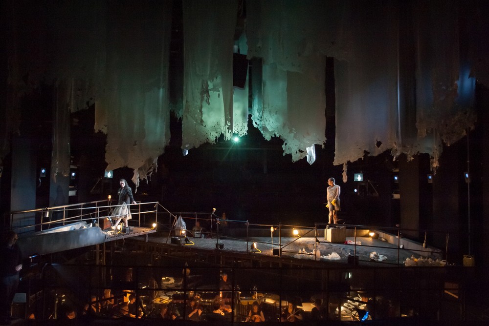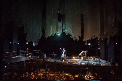 Režisér predstavenia John Fulijames absentoval na dôležitý prvok Müllerovej koncepcie a tou je škandálny vekový rozdiel medzi markízou a Valmontom. Markízu v slávnej inscenácii Berliner ensemble (1994) hrala Marianne Hoppe, ktorá mala vtedy osemdesiattri rokov. V opere to nevadí. Fulijames vytvoril veľmi pôsobivý koncept akým uchopiť a divákovi sprostredkovať náročnú súčasnú operu. V aréne divadla Linbury, kde diváci sedia oproti sebe, v prostriedku zíva hlboká orchestrálna jama, ktorá je sčasti prekrytá technickými mrežami, pod ktorými presvitá orchester a na ktorých sa hrá. Tento novodobý ring doplnený betónovými kvádrami, technickými halogénmi, odpadmi vo forme pet fliaš a igelitových vreciek, je doplnený o pôsobivý strop. Z výšky divadelnej sály visia rôzne dĺžky jemných ozobaných drapérií, ktoré slúžia aj ako projekčná plocha. V tomto kontaminovanom priestore sa postavy pohybujú a hrajú na dve strany. Postavy sú skoro nahé, špinavé a vyčerpané. Až na konci, po smrti Valmonta markíza vytiahne akési slávnostne šaty ukryté v jednej igelitovej taške, s ktorými laškuje. Fulijames vedie spevákov k naturalistickému herectvu, ktoré sa dobre snúbi s okázalou bolestnou hudbou, ktorá nedáva priestor pre nijakú áriu či jednoduchú melódiu. Je to dráma s hudbou, kde k polyfonickému majstrovstvu partitúry sa pridávajú hlasy divadelných foriem. Zdanlivo nekonečné rozhovory sú vylepšené trojitou projekciou spievaného textu na steny podesty kde sa hrá. A tak inšpiratívne jazykové majstrovstvo Müllerovej drámy vyniká ešte lepšie. Jeho rafinované filozofické pokriky sa tak lepšie zabodávajú do myslí diváka. Hodiny sveta síce tikajú podobne ako podivný budík, ktorý naťahuje markíza, v pozadí bzučí v dramatickom mieste buchot a ruch veľkomesta akoby práve popod štúdio prechádzalo metro, do ktorého by sa outsideri radi prekopali a svetlo vypadáva. Ťaživá úzkosť, klaustrofobické mámenie znásobuje „nechutná“ projekcia rôznych mikroorganizmov či chrobákov, ktoré akoby podmieňovali aj duševný rozklad postáv. Len v jedinom mieste sa zjavia krásne motýle, ktoré sú jediným dekoratívnym ornamentom tejto drámy.