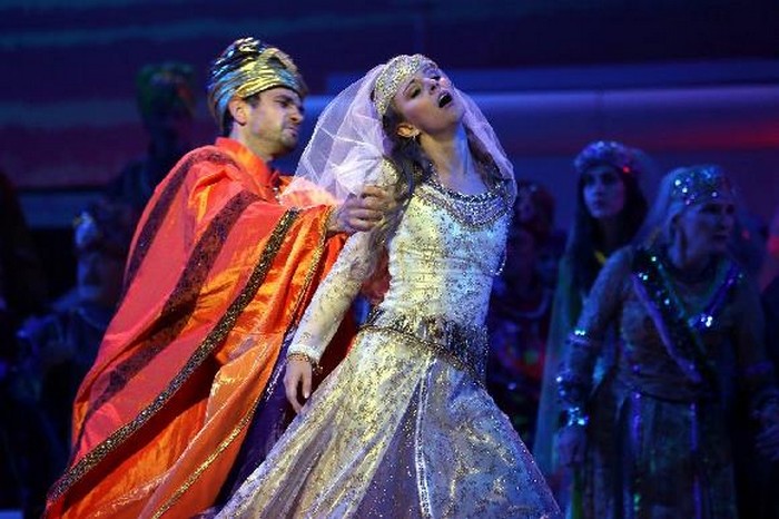 Zde byla realizována jako poslední z řady jiných inscenace Borodinova Knížete Igora na podzim roku 2012. ,,Jahrhunderthalle“ je veliký kruhový výstavní pavilon, postavený v roce 1913 architektem Maxem Bergem v době, kdy byla Wroclaw významným německým kulturním i hospodářským centrem. Bylo to ke stoletému výročí bitvy u Lipska, kde byl poražen císař Napoleon I. Realizace divadelních představení v tak velikém netradičním prostoru skýtá mnohé scénické možnosti, ale zároveň má četná úskalí. Jen šikovný inscenátor a scénograf umí dosáhnout efektu, jaký se od velkoprodukce očekává. Zatím se inscenátorům, kteří zde dosud předvedli svá pojetí operních děl, většinou vše více méně podařilo. Tyto produkce ovšem leckdy končí jako velkolepá pastva pro oči a vytrácí se tak smysl díla. Letošní Bizetova opera Lovci perel (Les pêcheurs de perles), nastudovaná samozřejmě ve francouzském originále ke sto padesátému výročí její premiéry v Paříži, splnila všechna očekávání. Dílo svým exotickým námětem a dějem umístěným na Ceylon by šlo jistě inscenovat jako bombastickou show. Režisér, zároveň scénograf a také autor světelného designu Waldemar Zawodziński z Lodže však nepodlehl zdobné okázalosti a podal vše odlišně na vyšší úrovni, mistrně a působivě. Základní dekorací širokého jeviště je symbolicky znázorněná dlouhá loď s několika stěžni s plachtami, které slouží jako projekční plochy a také výraznou měrou napomáhají navozování světelných nálad. O ty není v inscenaci nouze.