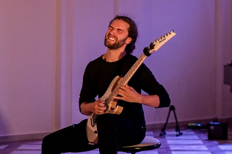 Jediným účinkujícím v této části večera je performer Morgan Reid, subtilní muž s dlouhými vlasy v pohodlných kalhotách a triku. Je člověkem mnoha schopností. Pro mne je především hudebníkem, který bravurně ovládá elektronickou kytaru, ale je současně i skladatelem, který dokáže „překomponovat“ slavné Beethovenovy tituly – Měsíční sonátu, klavírní skladbu Pro Elišku či náznaky jeho Osudové symfonie do metalového hávu. Je i velmi zdatným tanečníkem a choreografem, který se sám stává Beethovenem a jeho hudbou. Jeho pohybové kreace nevytvářejí „příběh“, jak je tomu u Dvořáka, ale spontánně reagují na hudební impulsy. Pravda, určitá nedotaženost pohybů je zde patrná, ale je mu nutno přiznat silný tvůrčí potenciál. Reid je performer, který zvládá hudbu hrát i skládat, s přehledem skočí do herecké nadsázky či pantomimického gesta a dokáže házet svými rozpuštěnými vlasy jako rozervaný Beethoven.