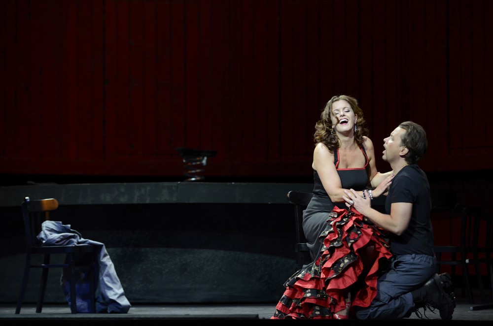 Premiéra Bizetovy Carmen v sobotu 28. září do jisté míry potvrdila předtuchy, které vzbuzoval samotný pohled na avizované obsazení nejen tohoto představení, ale i neobyčejně velkého množství naplánovaných repríz. Už první popremiérové uvedení počítalo se zcela jinou pěveckou sestavou, a každé další přicházelo s dalšími variacemi i zcela novými jmény. Šlo vesměs o členy operního souboru či stálé hosty a jméno tenoristy Marcella Giordaniho se mezi nimi vyjímalo až poněkud nepatřičně… Vznikl zkrátka dojem, že se vedení divadla ani nesnaží jakkoli zastřít, že se s novou Carmen počítá jako s repertoárovým kusem, jaký je možné hrát téměř kdykoli a jaký bude možné bez potíží obsadit domácími silami. A vzhledem k faktu, že se právě Giordani prakticky neúčastnil zkouškového procesu, a přesto se měl stát ozdobou premiéry, neočekávalo se nijak převratné režijní uchopení, ale spíše inscenace s jednoduchým aranžmá, se kterým se snadno ztotožní i narychlo dorazivší host.