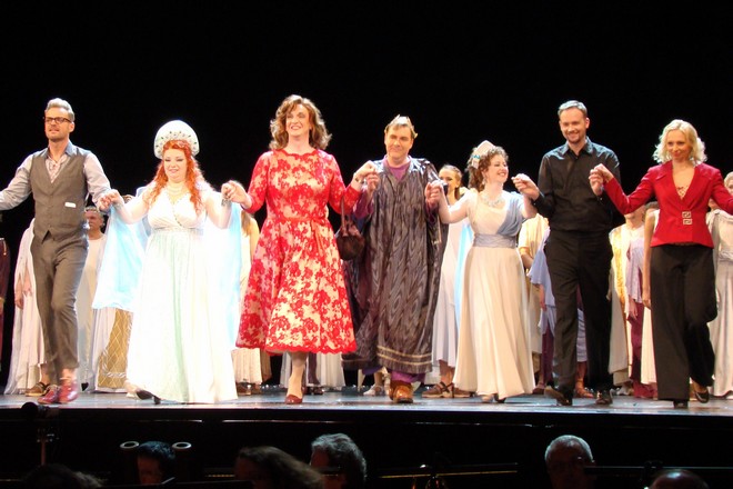 Když se poté Agáta vmísí i do samotného finále, které tak hudebně zcela rozklíží, impresário je nucen zkoušku rozpustit. Zůstane vyčerpán sám na jevišti a zpívá píseň Yesterday od Beatles. Tu přeruší zvonění jeho mobilního telefonu: volá mu redaktorka a žádá ho „v přímém přenosu“ o vyjádření ke zřizovatelovu rozhodnutí zavřít jeho divadlo. Vtom se za zvuku předehry z Wagnerova Lohengrina snese z provaziště na houpačce s labutími křídly matka Agáta, říká mu, ať neztrácí naději, s její pomocí že celou tuto situaci zvládne. Opera pak končí rozsáhlým finále opěvujícím proměnlivé kouzlo divadla.