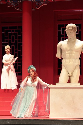 Po přestávce impresário vsedě spí na jevišti a na obrovské plátno se projektuje jeho sen: v bazénu popíjí společně s mořskou pannou a třemi dalšími vnadnými dívkami šampaňské. Vtom se z hlubin vynoří matka Agáta s gumovou koupací čepicí na hlavě a vrhá se po něm. S hrůzou se ze sna probudí a pokračuje v přípravách inscenace opery s antickým námětem o Romulovi a Ersilii. Nyní se má uskutečnit již zkouška v dekoraci a kostýmech. Impresário volá do zákulisí, aby na jeviště přivezli císařský palác. Ten nakonec na provazech přitáhne jen jediný technik (nový intendant zkrátka musí šetřit všude). Nejedná se však o palác římský, ale čínský! Když se poté impresário telefonicky spojí se svým koprodukčním partnerem v Číně, je mu oznámeno, že si objednal císařský palác a že zkrátka nespecifikoval jaký, a slovo římský jim opravdu nic neříká. Do toho přichází primadona, která odmítá v podobné dekoraci vystoupit. Zoufalý impresário se jí snaží namluvit, že se jedná o režijní záměr a progresivní dramaturgickou koncepci. Během primadoniny árie – ve skutečnosti zazní (kdoví proč) pro Angelinu Ruzzafante pěvecky relativně komfortní koloraturní árie komtesy Adély En proie à la tristesse z Rossiniho Hraběte Oryho – přiveze technik na scénu obrovské torzo antické (mužské) sochy, jejíž „obdařenost“ primadonu rozněžní natolik, že málem zapomene zpívat.