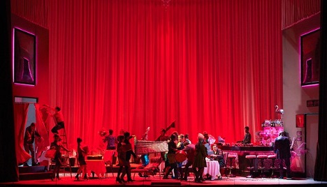 Maškaráda, přehlídka kostýmů, při níž jsou v omšelém nočním klubu už na začátku všichni opilí, tak si představuje režisérka Irina Brook „dramma buffo“. Podivné úbory, jen málo z nich má nějaký styl (kostýmy Sylvie Martin-Hyszka); tupé, které Don Pasquale nosí místo klobouku; sombrera a bíle oděný zpěvák výletů po oceánech zpívá slavné zastaveníčko „Com’è gentil“. A proměna v kýčovitý klub v „tiger-look“ – očím se při této inscenaci servíruje jako v cukrárně. Ale chuť na Donizettiho kalorickou bombu to nestimuluje.