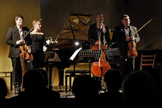Schumannův Kvartet pro klavír, housle, violu a violoncello Es dur op. 47 přinesl odlehčenější hudbu poklidnějšího charakteru, jíž však nechyběla energičnost. Obsazení se za tímto účelem rozrostlo o violu Karla Untermüllera, mimo jiné člena Haroldova kvarteta, která nejen skvěle dokreslovala barvu tohoto zajímavého obsazení, ale byla ostatním po celou dobu rovnocenným partnerem. Zejména pak v kontrapunktické závěrečné větě, v níž autor nešetřil rychlými pasážemi. Ty se ostatně objevily již v rozverném scherzu druhé věty, která zazněla ve velmi rychlém tempu a obdivuhodně nízké dynamice, doprovázela jakoby samozřejmou lehkostí, dodávající této části potřebný „šmrnc“. Nejpůsobivějším však bylo neuvěřitelné vřelé, lyrické Andante cantabile, jehož kouzlo umocňovala atmosféra chrámu a decentně nasvícené pódium, na němž nechyběly svíčky. Jednotlivé smyčce se střídaly v překrásně klenutých frázích pomalu plynoucí hudby, která všechny přítomné na krátký okamžik doslova přenesla do jiného světa. Tuto krásu v samotném závěru narušilo vyzvánění mobilního telefonu, u nějž jsem po zážitcích z poslední doby ocenila, že jej majitel téměř okamžitě vypnul. Perlivé Presto závěrečné věty fantasticky uzavřelo tento poutavý večer, který je jistě jedním z mnoha, jež tento výjimečný festival v následujících dnech nabídne. Neváhejte tedy této možnosti využít a moc prosím – nejen zde – vypínejte zvonění.