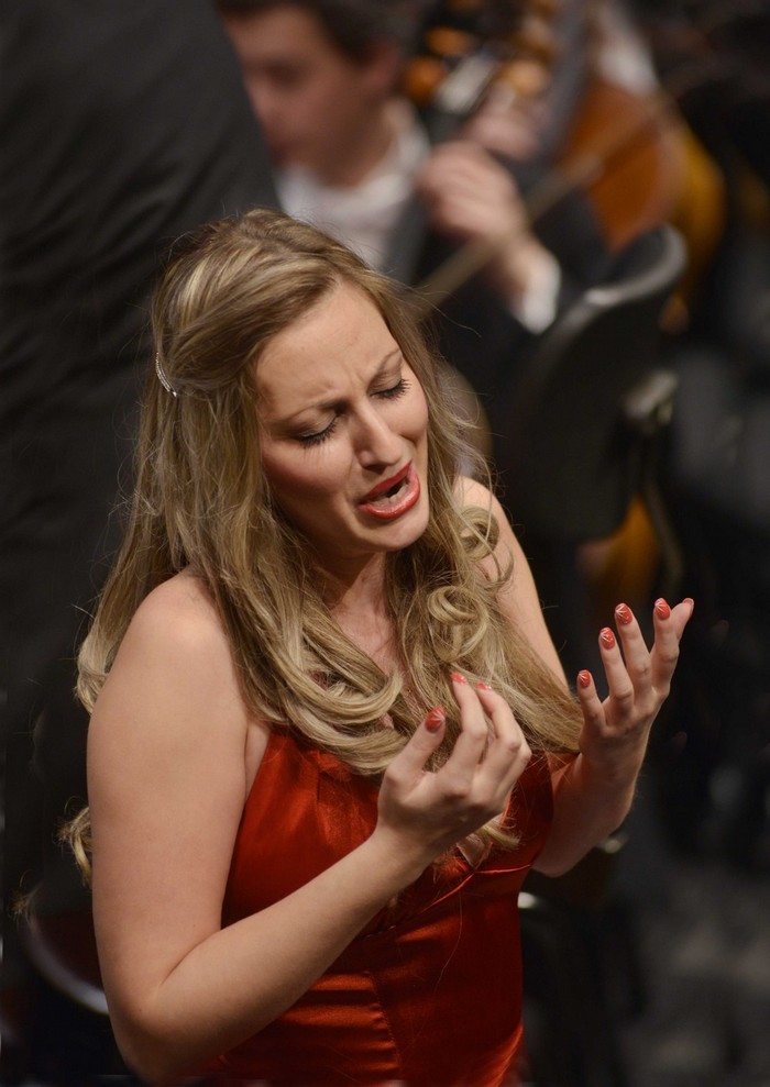 I když udílení cen a představování vítězných mladých umělců je zajímavé, byl nejvyšší čas, aby se svého primátu ujala hudba. A tak po úvodní rozjásané předehře ke Smetanově Hubičce řízené dirigentem Františkem Drsem, přichází na scénu Michaela Kušteková, která získala 2. cenu v kategorii Junior. A jako ve finálovém koncertu zpívá Markétčinu árii z Fausta. Vystřídá ji nositel první ceny v kategorii Píseň, německý baryton Felix Rumpf také s Gounodovým Faustem jako Valentin. Osvěžení nastává v příchodu šarmantní blondýnky Marty Reichelové a ta jistě přesvědčuje publikum svou brilantní Norinou z Donizettiho Dona Pasquala o oprávněnosti udělení druhé ceny v kategorii Opera. No a aby té ženské krásy nebylo moc představuje se muž, náš Luboš Skala. Nositel třetí ceny v kategorii Opera – muži ztvárňuje dramatickým způsobem Guglielma z Mozartovy opery Così fan tutte. Na závěr první půle koncertu je pak darována skutečná třešnička na dortu. Tou je naprosto oprávněně Gabriela Ubavić. To jakým způsobem gradovalo její podání Aminy v Belliniho Náměsíčné, bylo vskutku uchvacující a ojedinělé. Myslím, že by si zasloužila ještě hvězdičku k první ceně, která jí byla udělena v kategorii Opera. Odměna jejího výkonu publikem byla bouřlivá.