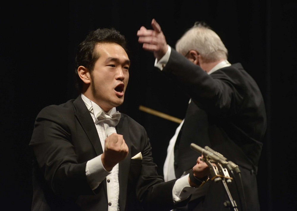 V následující pauzičce se určitě diváci, třeba při sklence vína, podělili o své zážitky(jsem přesvědčen, že kladné) z první části koncertu, aby je zvuk zvonku vrátil zpět do sálu na jejich místa. Přišel dirigent a s úsměvem přivítal půvabnou německou sóĺistku Joo-Anne Bitter, která rozjásaně zazpívala vstupní zpěv Alžběty v sále na hradě Wartburg,,Dich, teure Halle, grüss ich wieder….“ z druhého dějství Wagnerova Tannhäusera. Dostala za to také druhou cenu v kategorii Opera. Z německé hudby se přeskočilo v dalším hudebním čísle na Verdiho. Petra Vondrová procítěně interpretovala árii Ulriky. Nezapřela, že již profesionálně zpívá na operním jevišti. Mužských interpretů bylo pohříchu dost málo a tak dík za velký hlas jihokorejského pěvce Huynkwang Jo, který s naprostou jistotou a uvolněností vypálil céčko v závěru árie ,,Nessun dorma…“ z Pucciniho Turandot. Publikum vskutku křičelo, pískalo a všelijak jinak hučelo nadšením. Právem dostal první cenu v operní kategorii. Obecenstvo se postupně uklidnilo a mělo přivítat mezzosopranistku Alžbětu Vomáčkovou, která obdržela mezi juniory třetí cenu za Santuzzu v Mascagniho Sedláku kavalírovi, kterou zazpívala procítěně ve třetím kole den před galavečerem; ovšem bohužel zlé viry nemilosrdně zapracovaly na jejích hlasivkách. Před začátkem tak byla ohlášena její hlasová indispozice a sympatická štíhlá slečna, nositelka druhé ceny z loňské zdejší soutěže publikum svým zpěvem neobdařila. Pouze si převzala své ocenění. V této souvislosti bych zmínil jednu zajímavost. na jevišti zdejšího divadla vystoupila v minulosti dvakrát sama legendární Ema Destinová právě v úloze Santuzzy.