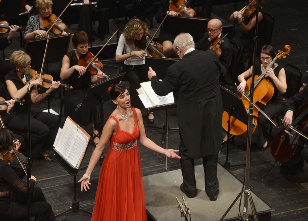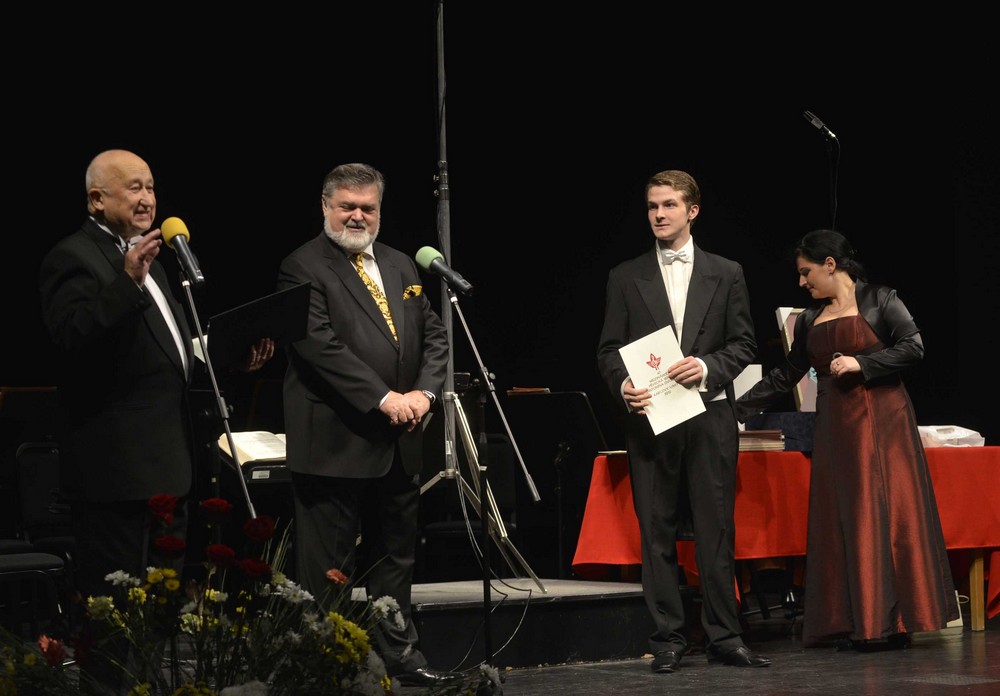 Vraťme se ale do reálu současnosti a uzříme, že árii Violety z prvního dějství Verdiho Traviaty se právě chystá zpívat světlovlasá útlá Srbka Gabriela Ubavic, která vynikala mimo zpěv krásnou gestikulaci. Podělila se o druhou cenu s již uvedenou Joo-Anne Bitter v kategorii Opera. Posledním mužským interpretem večera je opět mladík z Jižní Koreje, Hunyoung Choi. Dojal posluchače nádhernou a obtížnou árií ,,Salut! Demeure chaste et pure …“ z Gounodova Fausta. Na závěr nás čekala dvě zlatá želízka v ohni. Další Srbka s blond vlasy a postavou operní heroiny Sonja Šarič, nositelka první ceny v oboru Junior, získává obecenstvo svojí Leonorou z Verdiho Trubadúra. Její voluminósní, technicky i výrazově perfektně zvládnutý hlas opět vyprovokoval v publiku bouři nadšení a ovací. Úplný konec koncertu patří opět ve virtuózním zpěvu Ukrajinky Elony Korzhevych. Absolutní vítězka kategorie Opera-ženy si pohrála bravurně s koloraturami něžné Julie v Gounodově Romeovi a Julii. Na závěr nastoupili k závěrečnému defilé všichni zúčastnění umělci. Utvořili tak řadu nádherných mladých lidí přes celou šíři jevištního portálu. A celá ta symbolika výsostného interpretačního umění a krásy se musela zákonitě přenést do nitra každého diváka. Nesmím také zapomenout iména dalších oceněných za účast ve III. nebo II. kole, kteří na závěrečném koncertě nevystoupili, ale někteří se objevili se na prknech, jež znamenají svět, pouze při předávání ocenění. Byli to v kategorii Junior Tamara Morozová, Ivana Pavlů a Monika Sommerová, všechny z České republiky. Za píseň byla odměněna Rafaela Maria Lintl z Německa (II.cena) a Polák Radoslaw Rzepecki (III. cena). Pavla Radostová a Jan Janda obdrželi čestná uznání za účast v II. kole. V kategorii Opera dostali čestné uznání za účast ve III. kole také Michaela Gemrotová, Jin -Hee Lee (Jižní Korea), Petra Vondrová a Agneša Vráblová (Slovensko).
