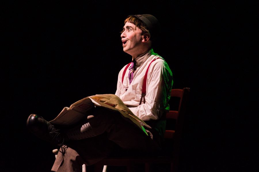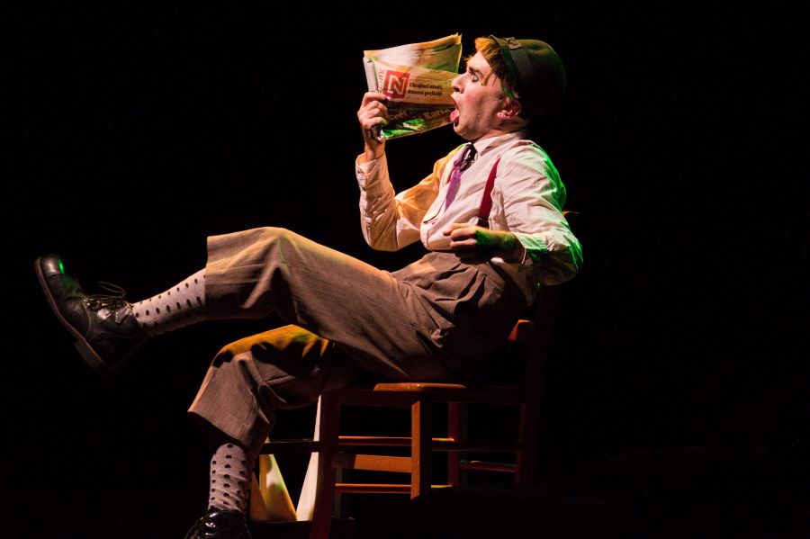 Benoît Turjman připomněl první pásmo příhod Souseda scénkou ze seznamovacího večírku, která dává vyniknout především jeho všestrannému pohybovému talentu, ono totiž karikovat taneční styly znamená u každého vystihnout podstatu, tak jako musí mim nahlížet podstatu lidských charakterů. Agustín-Cenizas si vybral dvě části představení, s nímž na festivalu vystupoval a spojil je do jedné scénky čtenáře denního tisku. Mladý ukrajinský klaun Boris Kriachek patří do juniorské skupiny souboru La Putyka, která se letos na jaře rozrostla, když Rosťa Novák nabídl tvůrčí azyl studentům Kyjevské akademie divadelního a cirkusového umění. Boris pracuje na postavě vpravdě bizarního klauna, má však jednu nevýhodu – jeho komunikace s dobrovolníky z publika je reálně nesrozumitelná, a její vtip se tudíž rychle ztrácí. V obou scénkách, s Vilémem Tellem i gauchem lovícím býka, vznikly de facto zábavnější momenty vlastní iniciativou samotných „civilů“, kteří každý po svém tak trochu porušili nepsané pravidlo, že se na jevišti nemá přebírat pozornost. Komický typ postavičky, která jako by vyskočila kresleného komiksu, má ovšem potenciál a performer si vysloužil aplaus za manipulaci lasem. Jak však tento typ nadále formovat, vypracovat mu konkrétní charakter a posunout jej přes pouhé fyzické atributy zvláštnosti k hloubce, jíž dosahuje velký klaun, je otázkou. Pokud zůstává celá skupina tak dlouho v Praze, mohli by snad její členové najít individuální vedení ne v souboru, kde půjde spíš o tréninky artistických výkonů než mentoring, ale především na pražské HAMU. Není důvod neseznámit se s tradicí české pantomimy.
