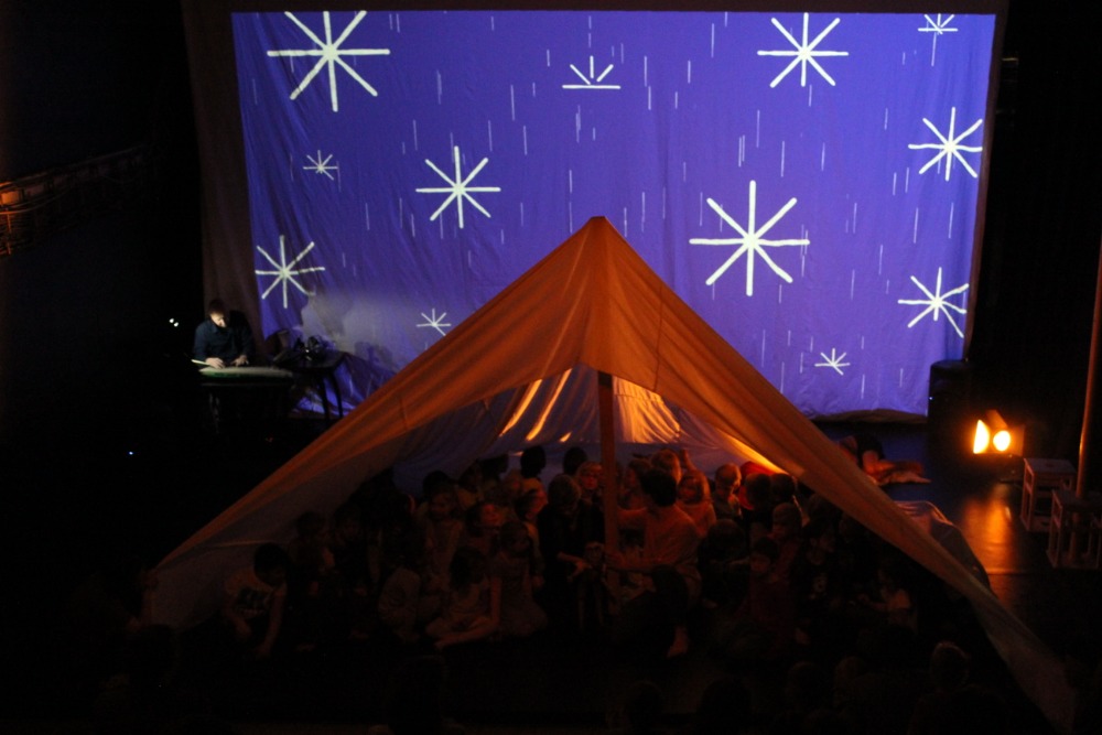 Interaktivní části malé publikum pokaždé baví: děti ještě nemají strach z jeviště a neuvědomují si, že se na ně ostatní dívají, je to pro ně hra. Ta bezprostřednost je jako divadlo na divadle, obraz ztracené bezstarostnosti. A divák si říká – kde jsem o ni přišel já? Malá scéna divadelního klubu stěží pojme všechny návštěvníky stanu, který vyrostl, aby se nad ním zešeřilo a na nebi znovu vykoukly hvězdy. Co si asi děti přejí?