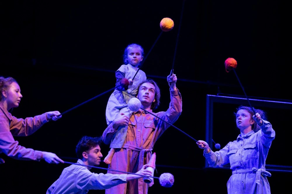 Nechybí komické číslo s pletením svetrů, které hlavní hrdince ne a ne sedět, ale mohou posloužit jako docela jiná rekvizita. Anebo nekonečná šála, po které lze vystoupat až do vesmíru, kde se klubka mění ve hvězdy a planety a kde se diváci chvíli ocitají v jakémsi útulném bezčasí, kde tma není nebezpečná nebo nepřátelská, ale naopak je spojencem. Nevtíravá a rytmická hudba už jen samozřejmě koresponduje s každou situací a s každým charakterem pohybu. Diváci si z inscenace odnášejí i svého druhu poučení – že z každé bezvýchodné situace vede nějaké řešení, byť znamená úplnou proměnu prostoru nebo účelu věcí.