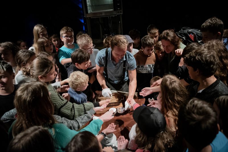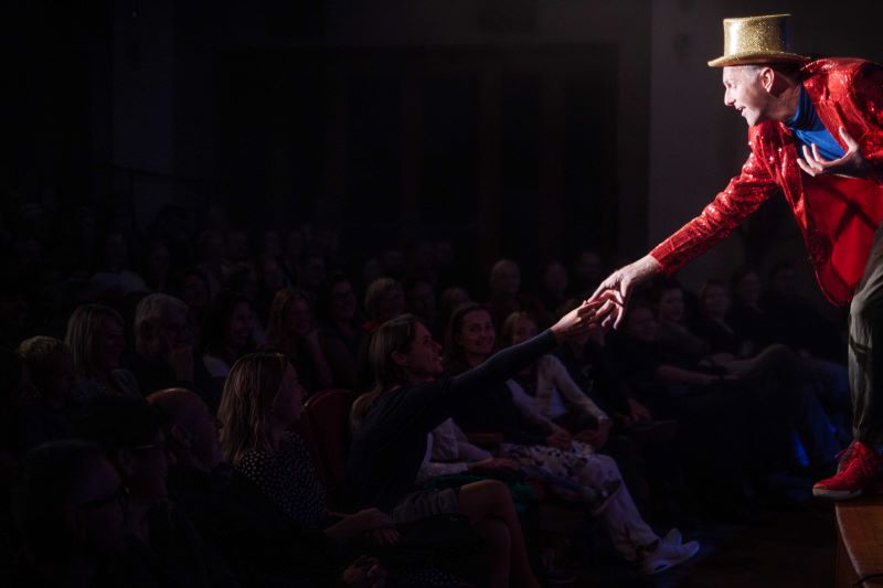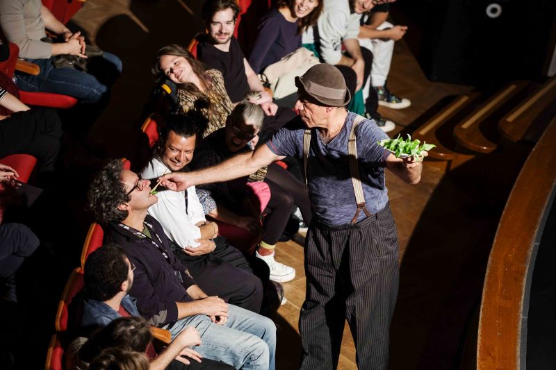 Americký komik, herec a mim Peter Shub, který předával své umění na workshopech (jak s ním, tak s Nolou Rae ještě přineseme rozhovory) představil v celovečerním programu na velkém jevišti Tylova domu svou esenci komiky. Není velká divadelní scéna pro jednoho jediného člověka příliš rozlehlým teritoriem? To je jen zdání. Záleží totiž na osobnosti a na její prezenci, a Peter Shub má techniku, zkušenost i charisma. Volný proud scén a nápadů jen zdánlivě náhodných a impulzivních, ve skutečnosti ale prokomponovaná dramaturgie a každé gesto i rekvizita na svém místě. Stačí, aby hovořily hercovy oči a publikum v napětí vyčkává, kam se bude akce vyvíjet dál. Stačí pohyb jednoho prstu a mimika, špetka iluzionistiky, hra se zdánlivě obyčejnými rekvizitami, jako je skládací stolek a mikrofon, a diváci skoro nestačí sledovat proměny situací a významů. Zároveň přesně vybalancovaná hranice humoru, tak aby nebyl nevkusný, i když stojí na prahu tabu, právě tak odměřený, aby vtip vzbudil smích s kapkou provinilosti, ale ne negativní odezvu. Balancování na hraně je vůbec mistrovským rysem, protože plavat v průměru nebo bezhlavě provokovat dovede každý, ale pohybovat se po útesu nad propastí je nejvíc fascinující. Peter Shub je typ hlavně klaunský, ale využívá i fyzický mimus, zároveň se nebrání mluvenému slovu ve scénách, které mají připomínat stand up, ale jsou velmi dobře připraveny. Nejzajímavější je možná poodstoupit ze své vlastní role a sledovat, jak dokáže performer publikum přimět k interakci a participaci, a je to i trochu mrazivé. Stává se až překvapivě snadno dirigentem orchestru, ale složeného z hráčů, které nikdy předtím neviděl. Pravda, ve většině připravených a rozhodnutých spolupracovat, ale přece jen… I zdánlivě nevinné umění komiky odhaluje o člověku a jeho povaze více, než si uvědomujeme…