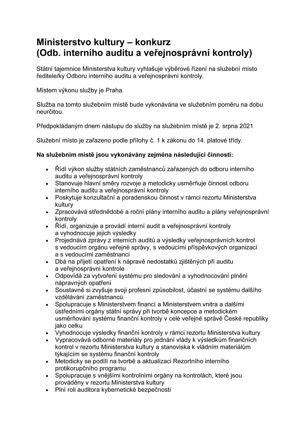 Inzerce Ministerstvo kultury vyhlašuje konkurz na ředitele Odboru interního auditu a veřejnosprávní kontroly Publikováno 13/06/2021 sdílejte: 0 minut čtení sdílejte: Více informací naleznete zde. TémataSeznam inzerátů Sdílet článek Facebook email zkopíruj odkaz vytisknout sdílejte: Předchozí článek Operní panorama Heleny Havlíkové (321) – Divadelní Oněgin z Brna Další článek Brněnská La bohème je plná hravosti a poezie 0 0 hlasy Ohodnoťte článek Odebírat Přihlášení Upozornit na nové a další komentáře nové odpovědi na můj komentář Label {} [+] Jméno* E-mail* Webová stránka Label {} [+] Jméno* E-mail* Webová stránka 0 Komentáře Nejstarší Nejnovější Most Voted Inline Feedbacks Zobrazit všechny komentáře Načíst další