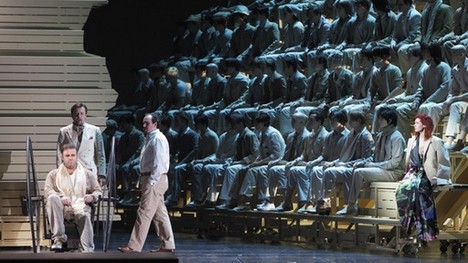 … samotná inscenace s obřími tribunami ne jevišti ovšem vyvolává nemalou nevoli jak u řady diváků, tak u nejednoho z recenzentů. Však se na ukázky podívejte…