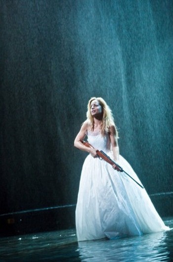Hudební nastudování měl na starosti Rani Calderon, německý basbarytonista Johannes von Duisburg (zažila ho i Státní opera Praha) byl Bludným Holanďanem a americká sopranistka Lise Lindström Sentou (na fotografii s brokovnicí). Varšavská premiéra Bludného Holanďana měla ohromný úspěch.