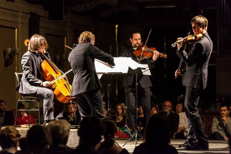 Apollon Musagète Quartett, jež je ve všech dostupných ohledech velmi různorodým a, v dobrém smyslu pozoruhodným tělesem, brněnským koncertem započal svou podzimní sérii evropských koncertů. Velká očekávání na sebe nenechala dlouho čekat. Předeslané (jen těžce říci předepsané) široké penzum použitých technik u Lutosławského Smyčcového kvartetu fungovalo u čtveřice umělců výborně. Ať už ostré glissandové či pizzicatové souboje, do perfektního ticha měkce dopadající hlazení flažoletů či rytmicky velmi precizně zahrané „běhavé“ party. Ať už s důrazem na výsledný souzvuk celého souboru stejně jako dbaní na důraz byť i v nejkratších sólovějších pasážích. Následné vyústění do jednotónového ticha proběhlo celé s křehkostí a mrazením v zádech.