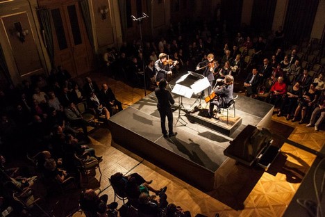 Úctyhodnou společností mu v první půli programu závěrečného víkendového dne byl jeho současník Witold Lutosławski, finální garde nabylo opět zcela jiného charakteru, a to v rámci Druhého „razumovského“ kvartetu Ludwiga van Beethovena. Počáteční změna v programu v podobě prohození úvodního Pendereckého Třetího kvartetu za Lutosławského Smyčcový kvartet byla pro mne změnou vítanou. Obě díla samozřejmě jako první upoutávají pozornost právě díky velikosti jmen jejich autorů, ovšem v tomto případě se nám nabízel pohled na práci, která pro autory znamenala buď přechod k novým přístupům či naopak jistý odklon k tvůrčí intimitě. Tomu se do jisté míry přizpůsobil i sál Besedního domu, sestaven pro nedělní večer poněkud komorněji. Kolem skromného pódia, jež kvartetu umělců sloužilo tak akorát, byla sedadla rozprostřena do půlkruhu. Rovněž jejich obsazenost byla vzhledem k jednotné ceně poněkud řidší a z řad studentů, jež jinak díky slevovým formám festival poměrně vydatně navštěvují, zbyla jen nejoddanější hrstka.