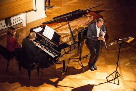 Kasík hraje vynikajúco, najviac ma uňho zaujali tiché jemné momenty, ktoré dokázal podať technicky presne vytvárajúc podmanivú atmosféru. Veverka oplýva nádherný tónom, nechybuje skoro vôbec, repertoár má hráčsky kvalitne naštudovaný. Predsa mi jeho prejav nebol zvlášť sympatický. Jeho postupne sa znásobujúce teatrálne, miestami až patetické prejavy som mu nedokázal uveriť. Už len samotné dýchanie v jeho podaní vyznievalo, ako by práve podal nadľudský výkon. Je to hráč na hoboj nepochybných kvalít, ale práve tento fakt akoby značne zasahoval do charizmy jeho osoby, v ktorej som nenachádzal skromnosť. Pridalo sa k tomu ešte dvojité ukláňanie po každej skladbe, aj na miestach kde sa nemenil počet hráčov a zrazu bolo všetko ťažkopádnejšie a nevyznelo tak ako by mohlo pri atmosfére odľahčenejšej. Úvodné Temporal Variations od Benjamina Brittena pre hoboj a klavír boli zahrané dôstojne avšak nie dych vyrážajúco. Potešilo ma, že aj napriek rozsahu cyklu pozostávajúceho z deviati častí, sa ho rozhodli uviesť vcelku. Po tých početných výberoch z cyklov miniatúr to bola príjemná zmena. Musím sa priznať, že nie som ani žiadnym veľkým nadšencom inštrumentácie klavíru a hoboja, ktorý svojou špecifickosťou vytvárajú veľmi svojrázne spojenie. Atmosféra kompozícií pre toto duo je predsa len tak osobitá, že po opakovanom počúvaní prestáva tak baviť. To však duo vyvážilo vsuvkami čisto sólových skladieb. Hneď prvou boli Tri skladby pro klavír českého autora Klementa Slavického. Interpretácia bola technicky a výrazovo vyvážená, podaná s výraznou dynamickosťou, čo mi v tomto prípade sedelo. Ďalšou Suitou pre hoboj a klavír sme sa vrátili k predošlému nástrojovému obsadeniu. Klasická forma postavená na kontrastoch pomaly, rýchlo obsahovala pútavé kompozičné momenty, napríklad prvá časť Pastorale: Tempo rubato začínala držanými tónmi hoboju a postupným aditívnym princípom dĺžky príležitostných vpádov klavíra. Nič výnimočné a jedinečné však skladba a ani jej prevedenie neponúkli.