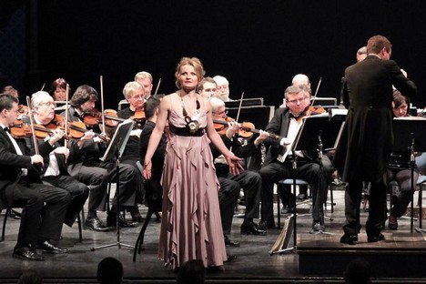 A já jsem je 27. ledna ráda spoluoslavila. Orchestr Národního divadla ztratil na jevišti Stavovského divadla šanci schovat se v „díře“ a to je vždycky dobře. Hudební ředitel Národního divadla Robert Jindra s přehledem dirigoval, reagoval na výkony umělců, které řídil, a příjemně se tvářil.Ne tak orchestr, většinou. Nestačí hrát, jak nejlépe umím, ještě by to chtělo, aby dámy nepotlačovaly svou ženskost úzkými kalhotami, které na jevišti nepůsobí dobře, a aby (všichni) neměli kamenné obličeje. Chce to zkrátka trochu toho „šou dva tři“. Jde o inscenační kvalitu – scénografie je slavnostní (torzo ze Svobodovy výpravy ke Kašlíkovu Donu Giovannimu, tedy po stranách jeviště kopie hledištních lóží, zadnímu prospektu dominuje skladatelův portrét v červeném, květiny, světla). Sólisté Jana Kurucová a Adam Plachetka.