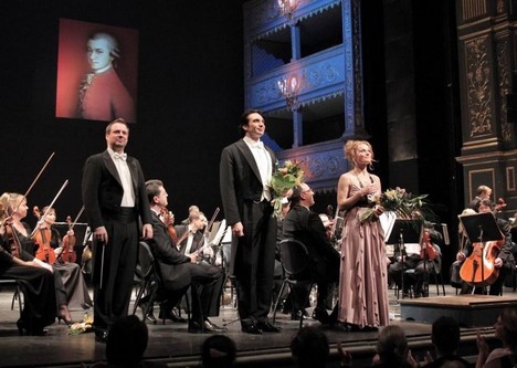 A teď Giovanni se Zerlinou. On je doslova nad věcí. Bude Zerlina chtít? Dobrá. A pokud ne? Vždyť je jich tolik… Hlavně, že se bavím. Zerlina Jany Kurucové opět v napětí. Málo hravosti. Její Sextus z Tita – konečně to pravé, kalhotková role, která jejímu hlasu i typu velmi svědčí! Paní Kurucová zpívá Sexta výborně – bez tenze, s různorodou dynamikou, s citovým nasazením. Tohle je (aspoň zatím) její parketa. Samozřejmě, že dál poroste, má talent a je to v jejích silách. Chápu, že jako zaskakující Idamante v Národním divadle velmi dobře uspěla. V kalhotkové roli nevadí její poněkud rezervovaný emocionální projev. A je ještě dost času na akceleraci dalšího vývoje! Už teď je angažovaná v Deutsche Oper v Berlíně. A Adam Plachetka ve Staatsoper Wien. Je jim i nám přáno! Guglielmo ještě postrádá velkorysou sebestřednost ve výrazu a v duetu s Dorabellou také mají světlou budoucnost ještě před sebou. Přídavky: Šampaňská árie Dona Giovanniho, kterou Adam Plachetka virtuózně udýchá a uzpívá jako málokdo teď i v minulosti. Výborně! Pak přidává Jana Kurucová svého pěkného Cherubína a oba na závěr Pa-pa-pa-pa z Kouzelné flétny.Před závorku dávám Leporella, Sexta, Šampaňskou a výkon orchestru vedeného Robertem Jindrou v již shora zmíněných předehrách a v doprovodech árií. Myslím, že se oslava podařila. Dobře vybraný program a interpreti, soustředěný výkon orchestru pod taktovkou jejich čerstvého hudebního ředitele. Začíná být zřetelné, že nové vedení Národního divadla a jeho opery soubor už doopravdy vede. Ať se jim všem i nadále takto daří. Éra Roccových režijních vivisekcí ať už vlastních nebo transportovaných je za námi. Král je mrtev, ať žije král!