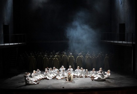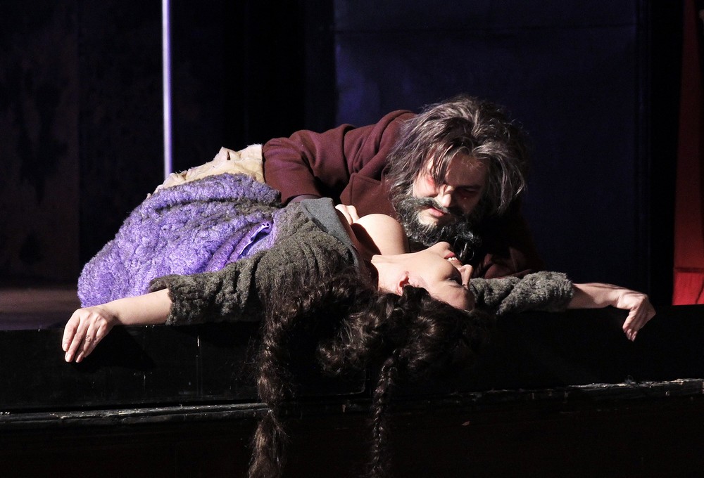 Už samotná opera je charakteristická tím, že se v jednotlivých obrazech střídají davové sborové scény (v případě inscenace v Národním čítá sbor sto dvacet členů) s komorními psychologickými výjevy. V režii Lindy Keprtové je pak tento rozpor podtržen i z hlediska režijního přístupu a rozpory bychom našli i v pěveckých výkonech jednotlivých sólistů.