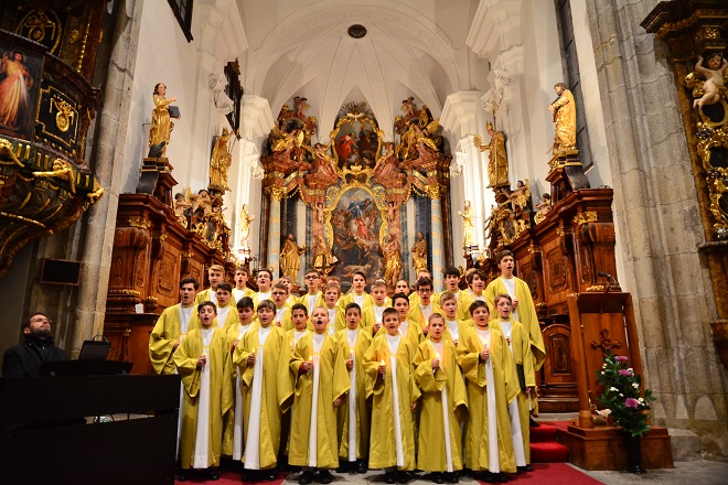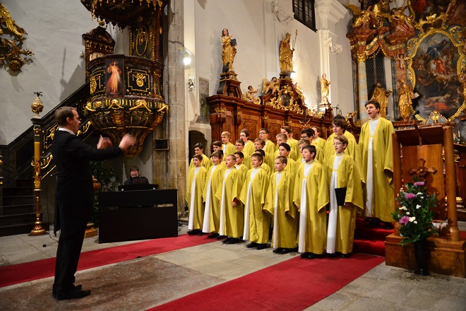 Koncert přinesl v první polovině mix ze skladeb mistrů hudby baroka, klasicismu i romantismu. Vstupní Ave Maria Giulia Cacciniho dobře dramaturgicky navodila dobu florentské cameraty, její dobu posledních dvou desetiletí šestnáctého století – společnosti scházející se u Giovanniho Bardiho, odmítající kontrapunkt jako zhoubu výrazu. Caccini byl jemný melodik, který položil reálný základ k pěvecké virtuozitě v duchu cameraty, předznamenávající duch baroka. Přes počáteční nalézání se v akustice chrámu zazněl Caccini chlapeckému sboru, vedenému funkčním, neokázalým gestem dirigenta jemně, měkce pěvecky, stylově. V klasicistně laděném Te deum laudamus Antonína Rejchy a Mozartově Credu se začala lépe prezentovat sborová homogenita zvuku, která se i přes příliš hlučný doprovod akusticky prosazovala.