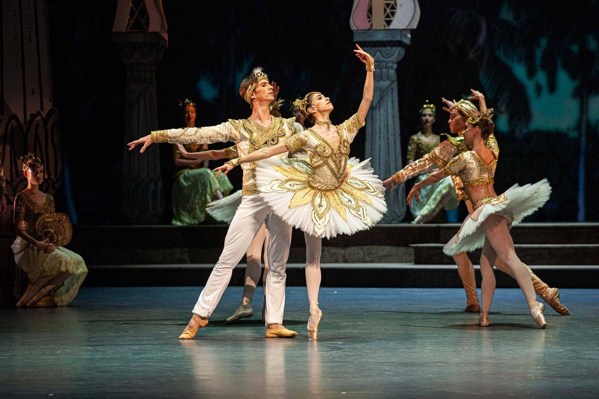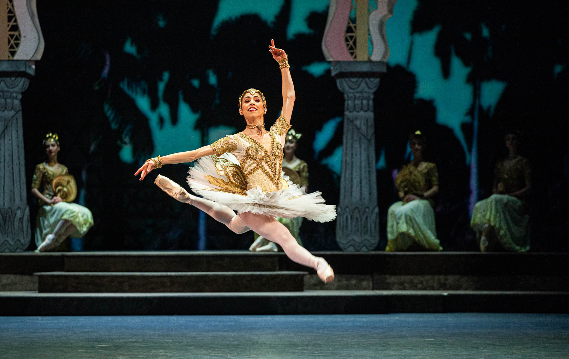 Zatímco Gamzatti je nekorunovanou královnou prvního dějství, kde Yasmine Naghdi zaujímá svou živelností, technickou jistotou a zmíněným herectvím bez afektu, druhé dějství zas ovládá Nikia. Ať už je to jen obraz a sen, nebo skutečná duše utěšitelka, Fumi Kaneko v ní nachází ideální lyrickou polohu. Diváci si vychutnají i variace stínů, pro které se tentokrát sešly všechny první sólistky souboru, Klaudia Radačovská, Andrea Popov Smejkalová a Eriko Wakizono. Jejich energie se najednou násobí, když se sebejistě střídají v krátkých, ale zásadních výstupech. Tak jako se v jediném výstupu Zlatého bůžka blýskne tanečník Shoma Ogasawara.