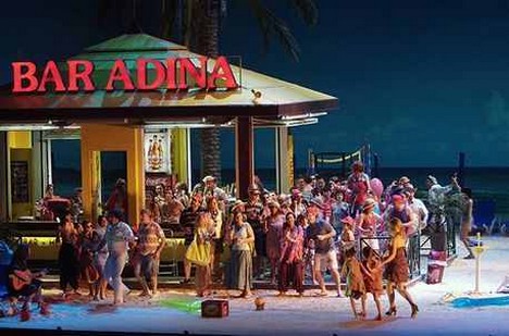 Léto na pláži plné chvějivé erotiky, vzrušivých ozvěn dorážejících vln a nezaměnitelné vůně mořské soli. Přesně takový je Nápoj lásky v Teatro Massimo v italském Palermu.Tahle koprodukce s operními domy ve Valencii a Madridu má i u Italů v Palermu právě v těchto dnech ohromný úspěch. Podle mladého italského režiséra Damiana Michieletta je právě pláž to místo, kde se milostné tužby projevují nejžhavěji a nové vztahy nejrychleji vzplanou. Během jednoho slunného dnes se v Donizettiho opeře potkávají plavčík Nemorino, který během nafukování lehátek zálibně pozoruje vyhlášenou místní krásku Adinu – majitelku plážového kiosku se zmrzlinou, Belcore se živí jako námořník a Dulcamara? Ten je zaměstnán jako prodavač opalovacích krémů a také energetických nápojů.