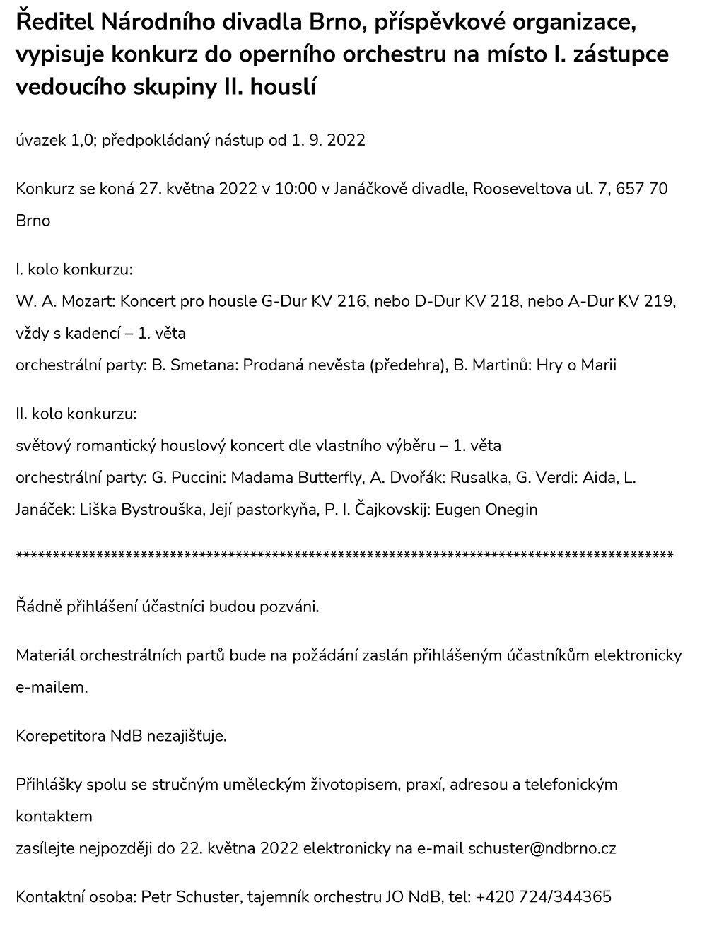 Inzerce Národní divadlo Brno hledá I. zástupce vedoucího skupiny II. houslí Publikováno 11/03/2022 sdílejte: 0 minut čtení sdílejte: TémataSeznam inzerátů Sdílet článek Facebook email zkopíruj odkaz vytisknout sdílejte: Předchozí článek Mechanický pomeranč se roztikal v Praze Další článek BatoLaterna – premiéra inscenace Laterny magiky 0 0 hlasy Ohodnoťte článek Odebírat Přihlášení Upozornit na nové a další komentáře nové odpovědi na můj komentář Label {} [+] Jméno* E-mail* Webová stránka Label {} [+] Jméno* E-mail* Webová stránka 0 Komentáře Nejstarší Nejnovější Most Voted Inline Feedbacks Zobrazit všechny komentáře Načíst další