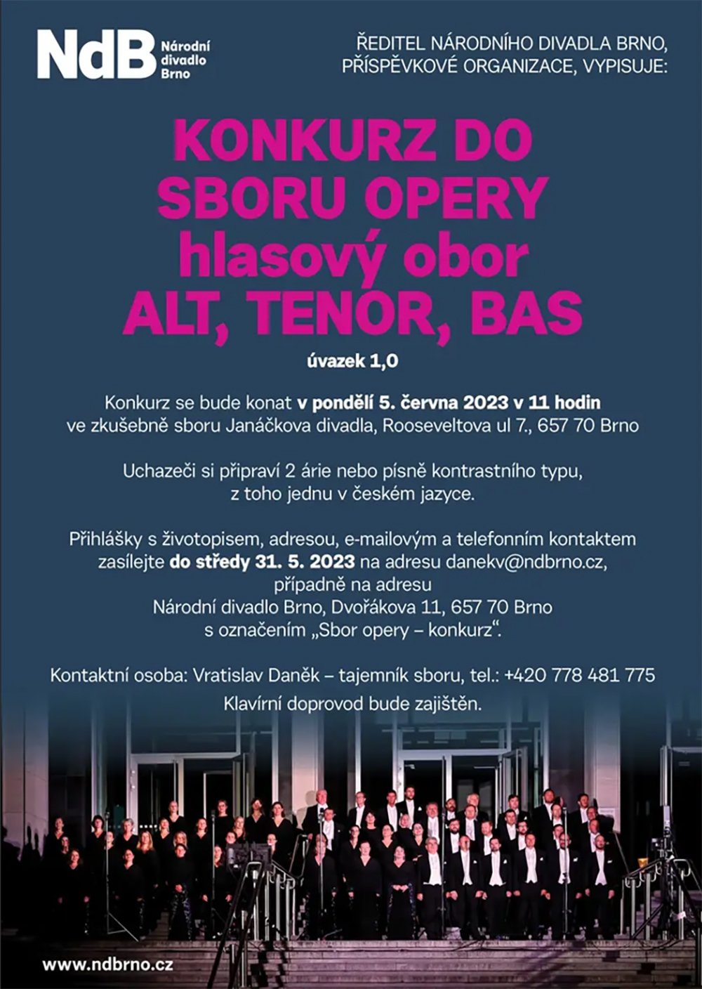 Inzerce Národní divadlo Brno vypisuje konkurz do sboru opery (alt, tenor, bas) Publikováno 04/05/2023 sdílejte: 0 minut čtení sdílejte: TémataSeznam inzerátů Sdílet článek Facebook email zkopíruj odkaz vytisknout sdílejte: Předchozí článek La Sylphide, nová premiéra Baletu Národního divadla Další článek Boris Giltburg a manželé Jarůškovi nahrávají kompletní klavírní tria Antonína Dvořáka 0 0 hlasy Ohodnoťte článek Odebírat Přihlášení Upozornit na nové a další komentáře nové odpovědi na můj komentář Label {} [+] Jméno* E-mail* Webová stránka Label {} [+] Jméno* E-mail* Webová stránka 0 Komentáře Nejstarší Nejnovější Most Voted Inline Feedbacks Zobrazit všechny komentáře Načíst další