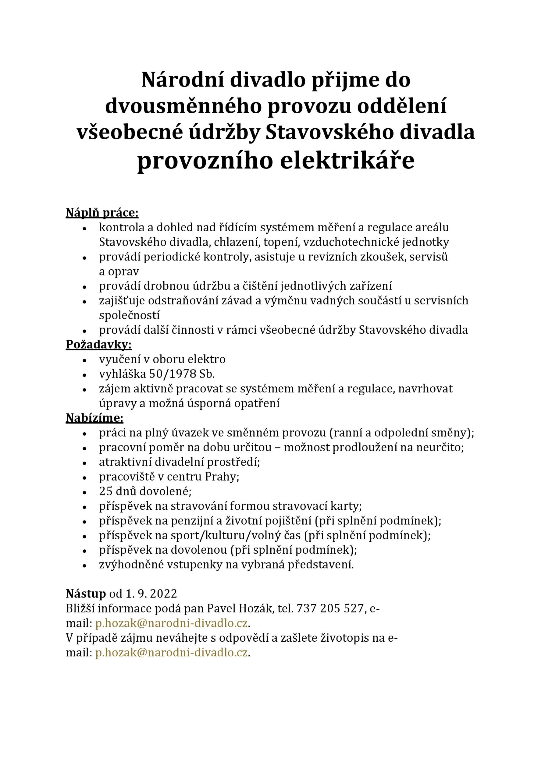 Inzerce Národní divadlo hledá provozního elektrikáře do oddělení všeobecné údržby Stavovského divadla Publikováno 22/05/2022 sdílejte: 0 minut čtení sdílejte: TémataSeznam inzerátů Sdílet článek Facebook email zkopíruj odkaz vytisknout sdílejte: Předchozí článek Album týdne Normana Lebrechta: Henryk Górecki – Skladby pro klavír Další článek Košické hudební jaro uzavřou Svatební košile 0 0 hlasy Ohodnoťte článek Odebírat Přihlášení Upozornit na nové a další komentáře nové odpovědi na můj komentář Label {} [+] Jméno* E-mail* Webová stránka Label {} [+] Jméno* E-mail* Webová stránka 0 Komentáře Nejstarší Nejnovější Most Voted Inline Feedbacks Zobrazit všechny komentáře Načíst další