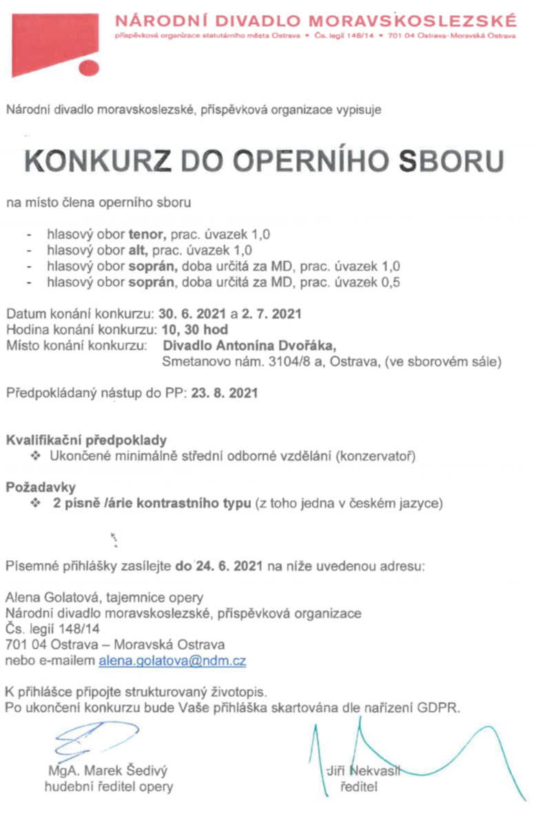 Inzerce Národní divadlo moravskoslezské vyhlašuje konkurz do operního sboru Publikováno 23/05/2021 sdílejte: 0 minut čtení sdílejte: TémataSeznam inzerátů Sdílet článek Facebook email zkopíruj odkaz vytisknout sdílejte: Předchozí článek Orchestr Musica Florea v unikátní nahrávce uvedl Dvořákovo Stabat Mater Další článek Týden s hudbou. Koncerty a představení online i s publikem 0 0 hlasy Ohodnoťte článek Odebírat Přihlášení Upozornit na nové a další komentáře nové odpovědi na můj komentář Label {} [+] Jméno* E-mail* Webová stránka Label {} [+] Jméno* E-mail* Webová stránka 0 Komentáře Nejstarší Nejnovější Most Voted Inline Feedbacks Zobrazit všechny komentáře Načíst další