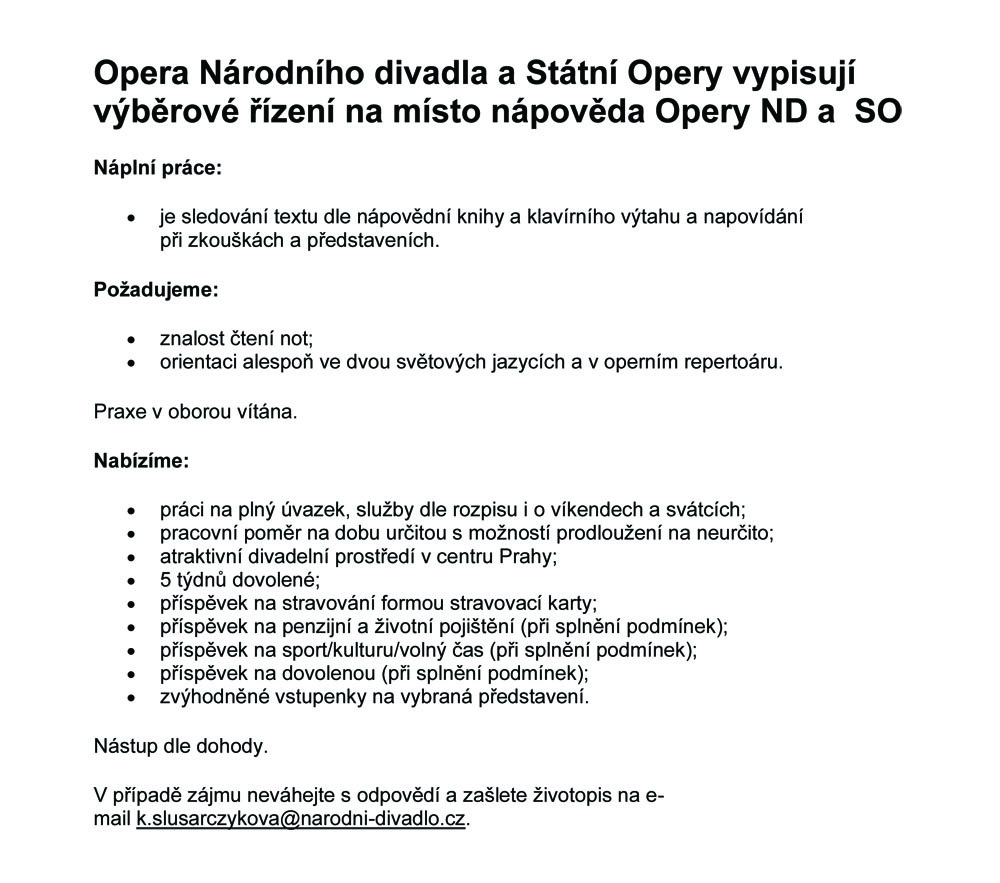 Čtení Národní divadlo vypisuje výběrové řízení na místo nápověda