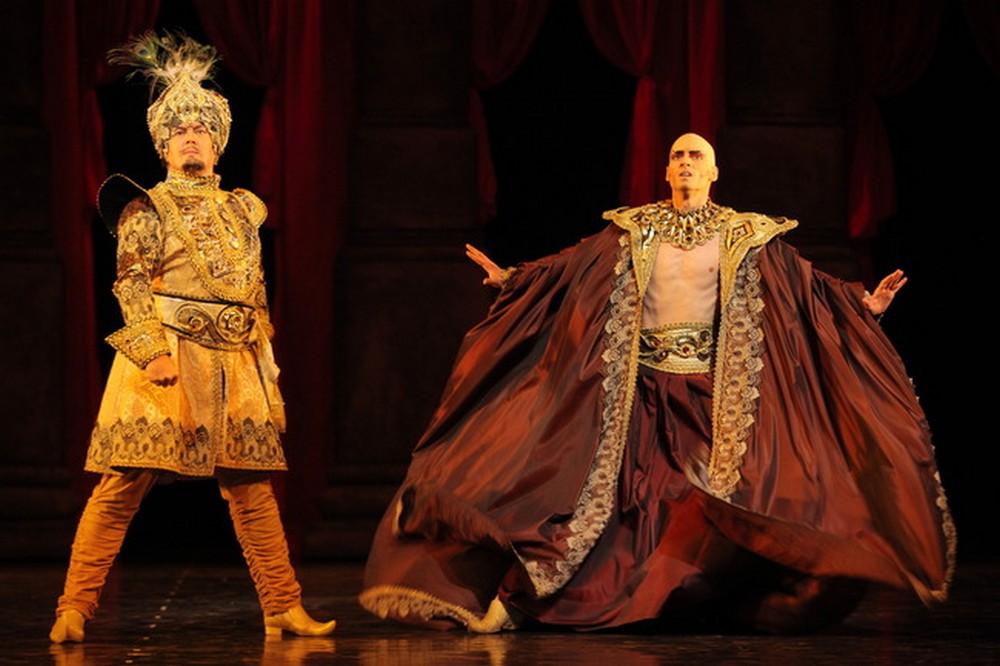 Tím, co brněnskou inscenaci uvádí v život a vtiskuje jí ojedinělý, nezaměnitelný punc, jsou výkony tanečníků a, jak se na tento exotický titul sluší a patří, jde o koření mnoha chutí a vůní, bohužel však také poněkud proměnlivé kvality. Skutečnou ozdobou inscenace jsou především výkony představitelů hlavních rolí Gamzatti, Nikie a Solora. V Ivanu Popovovi získal brněnský soubor technicky skvěle připraveného tanečníka, jehož vysoká postava a výrazná port de bras přirozeně ovládají prostor jeviště a společně s elegancí a kultivovaností projevu z něj vytvářejí ideálního představitele hlavních mužských rolí v klasických titulech. Představitelka Nikie Eriko Wakizono se prezentovala dokonale čistým, nesmírně lehkým a subtilním tanečním projevem, jenž ovšem nepostrádal výrazovou přesvědčivost, vše pak korunoval její vytříbený aplomb. Všechno a všechny na jevišti ovšem zastínila představitelka její sokyně Gamzatti, Ivona Jeličová. Byť v jejích developpés a italských fouettés nenajdeme flexibilitu a lehkost její japonské kolegyně, svým nepřehlédnutelným výrazovým potenciálem, jenž se zračí v každém gestu, každém pohybu, každém pohledu, na sebe neustále strhává pozornost hlediště. Role Gamzatti v brněnské inscenaci jí vyhovuje tím spíše, že své interpretce nabízí celou škálu protichůdných výrazových poloh, v nichž je Jeličová jako ryba ve vodě, a každou z nich dokáže přesvědčivě naplnit až po okraj. Nejlepším příkladem může být situace, kdy se na jejích zásnubách se Solorem najednou jako rudý vykřičník válečníkova svědomí zjeví Nikia, aby zatančila svou známou variaci, Jeličová však dokáže jemnými gesty a pohledy, kradmým flirtováním se svým nastávajícím odvádět jeho pozornost a učinit tak z výstupu své sokyně marginální záležitost.
