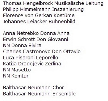 Ruská operní diva Anna Netrebko se půl roku před plánovaným debutem v roli Hraběnky v Mozartově Figarově svatbě nakonec rozhodla, že ji zpívat nechce. Náhradnici ovšem ve Festspielhausu v Baden Badenu přesto nehledají, udělali to jinak: hrát se v květnu bude Don Giovanni, s Annou jako Annou. Jen nejednoho z dalších protagonistů bude třeba honem rychle najít…