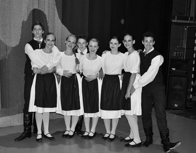 Ano, máme i charakterní tanec. Děláme tu lidové tance ruské, polské, italské… Ale mému srdci nejbližší slovenský folklór tu neděláme. Mně se charakterní tanec líbí, je to něco jiného než klasika a klasika. (smiech)