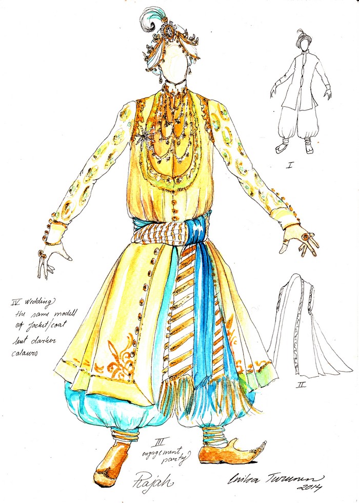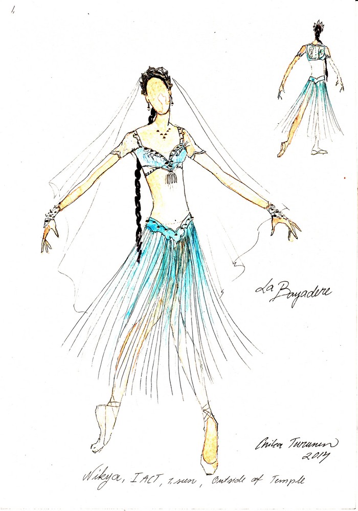 Je to zvláštní, ale dokud jste mi nepoložila tuto otázku, nikdy jsem nad tím neuvažoval. Obvykle je to totiž při práci na nějakém baletu jedno z mých prvních rozhodnutí. Jediné vysvětlení, které mne v této souvislosti napadá, je to, že ve srovnání se Západem se móda a styl v Indii nijak dramaticky nezměnily. Zatímco v Indii ženy stále nosí tradiční sárí a nadále se stavějí mramorové a zlatem zdobené budovy v klasickém architektonickém slohu, na Západě jsme už dávno vyměnili barokní oblečení za minisukně a domy postavené ve stylu nového urbanismu mají pramálo společného s klasickou architekturou. Právě z toho důvodu a také proto, že příběh mé inscenace nesouvisí se žádnou politickou událostí, se děj odehrává v „jiném čase“. Pokud bych to však měl přece jen nějak upřesnit, scéna a kostýmy odkazují na to, že tato verze Bajadéry se vztahuje k polovině devatenáctého století, což se v Indii perfektně hodí k romantické atmosféře baletu.