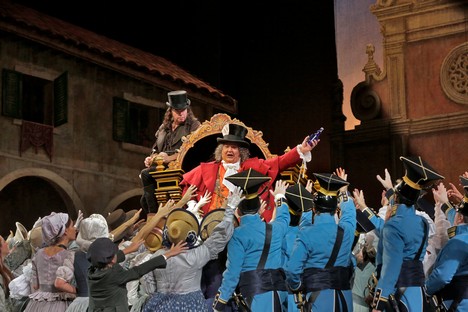 Herecký koncert a činoherně přesvědčivá mimika kvartetu sólistů, kteří stáli zjevně v popředí inscenace, dávala zapomenout na nepříliš výraznou režii Barletta Shera, jehož aranžmá mělo ráz obvyklé, nijak nevynalézavé operní rutiny, řekl bych i šablony. Reakce sboru se daly předem očekávat, jak byly málo vynalézavé. Ne, že bych od této dějově naivní opery očekával jevištní zázraky (Pasquale nabízí více námětů pro humor i vtipnější dialogy plné zvratů). Konvenční scénografie Michaela Yeargana vytvářela až překvapivě konzervativní podklad, režie se orientovala divadelně v běžně divadelní rutině, kterou věru na rozdíl od pěveckých výkonů výraznější mustr pro operní svět takto nepředložila. Humorných situací i vtipných gagů by patrně nejen přední evropské operní scény dokázaly přinést více. To bylo zřejmé i v práci se sborem, jehož vstupy, krom výborné pěvecko-hudební složky nic jevištně objevného ani vtipného nepřinášely. Krom jmenovaných pozitiv sólistů to byla především perfektní rytmická souhra i svižných parlandových částí ansámblů mezi výborně hrajícím orchestrem (výtečná dechová sóla) a jevištěm. Taková míra perfekce v live představení je víc než obdivuhodná a tuto složku můžeme asi nejvíce ze všech chápat pro naše scény a jejich dirigenty jako nejvíce vzorové a inspirativní.