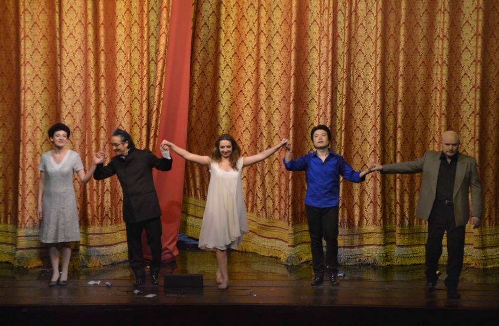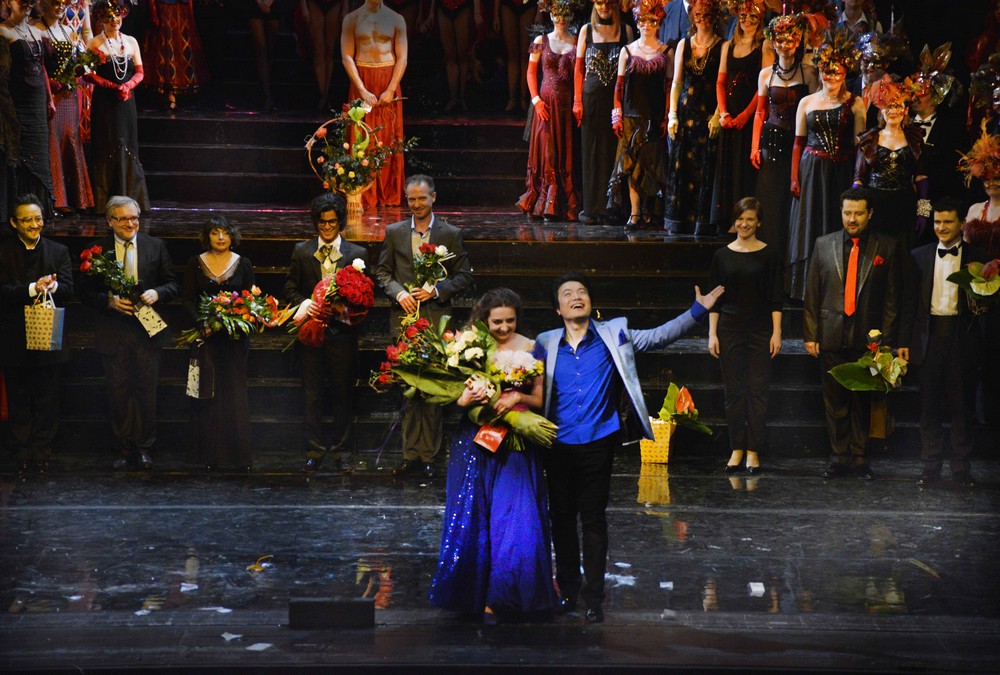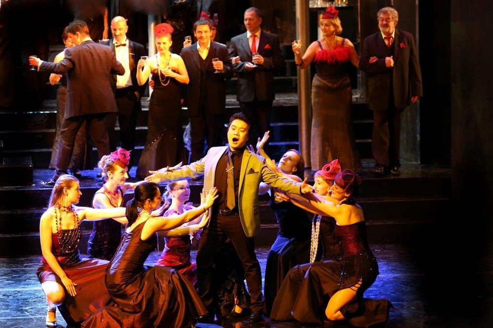===Hudební stránka díla byla svěřena libanonskému dirigentovi Bassemovi Aikikimu. Tento mladý umělec pokračoval po hudebním vzdělávání ve své vlasti studiem dirigování v Polsku a je již několik let členem operního souboru právě ve Wroclawi. Traviatu zde řídil již před několika lety. Jeho velikým vkladem je příkladné porozumění se zpívajícími sólisty. Umí neuvěřitelně ztišit orchestr, což bylo markantní při krásných pianissimech představitelky titulní role Anny Lichorowicz. Tato významná mladá wroclawská sólistka bezproblémově zvládala bravurní koloratury svého náročného partu. Jejím partnerem v roli Alfréda Germonta byl jihokorejský tenor Sang-Jun-Lee, vládnoucí znělým hlasem s bezpečnými výškami. Ona příznačná slza italského belcanta u jeho spíše hrdinného hlasového materiálu však poněkud chyběla. Velkým překvapením byl představitel Alfrédova otce, rovněž jihokorejský barytonista Matteo Suk. Jemu je italská kantiléna velmi blízká a lehké a průrazné vysoké tóny obecenstvo doslova ohromovaly. Scéna s Violettou byla pěvecky herecky excelentní. Rovněž po nádherné árii Di Provenza il mar byl odměněn frenetickým nadšením publika. To ostatně reagovalo velmi živě během celého představení a často se ozývalo po známých áriích nadšené volání Brava. Z řady menších rolí je třeba zejména jmenovat šarmantní Katarzynu Haras jako Floru nebo Jacka Jaskulu v roli Barona Douphola. Početný, přesně zpívající a dobře rozehraný sbor vedla Anna Grabowska-Borys. Po představení se konalo ve velkém foyeru příjemné setkání s tvůrci a sólisty inscenace, které představila ředitelka divadla, dirigentka Ewa Michnik.+++